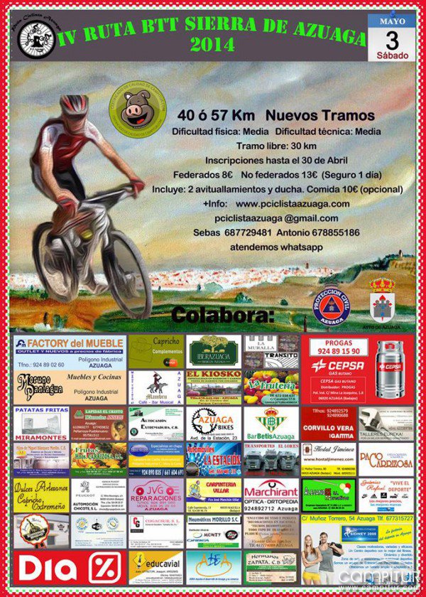 La Peña Ciclista de Azuaga organiza por cuarto año consecutivo su IV Ruta BTT “Sierra de Azuaga”, la cual se llevará a cabo el próximo 3 de mayo.
