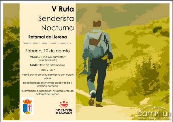 El sábado, 10 de agosto, Retamal de Llerena acoge la celebración de su V Ruta Nocturna Retamal de Llerena.